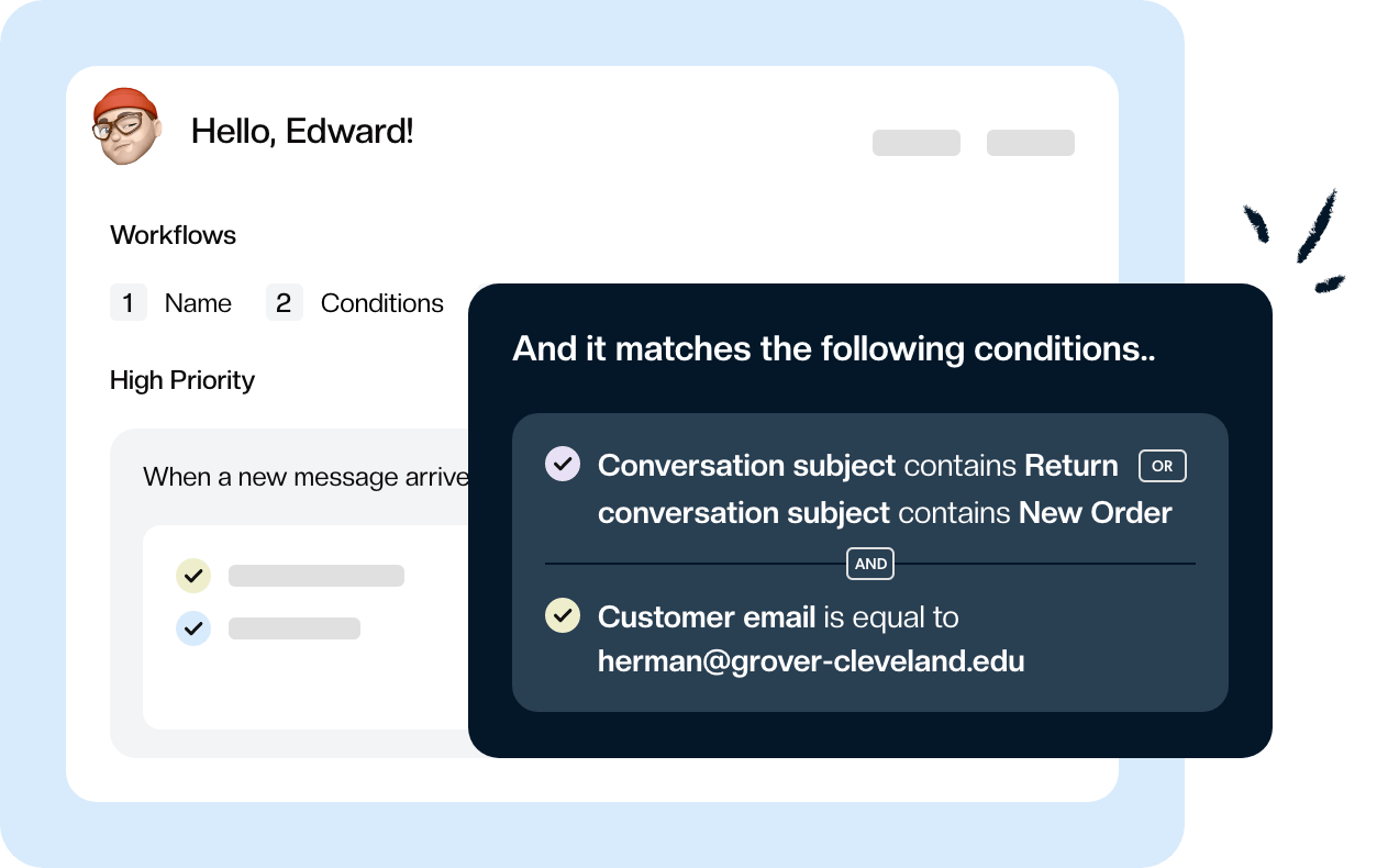 Not every email needs the attention of your team. Create rules to ignore or close inbound emails automatically. Or use a workflow to push critical emails to the top of your Gmail inbox.